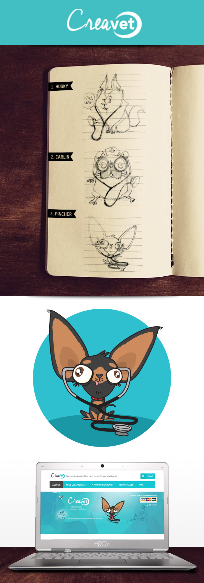 Création d'une mascotte pour compléter l'identité visuelle de Creavet