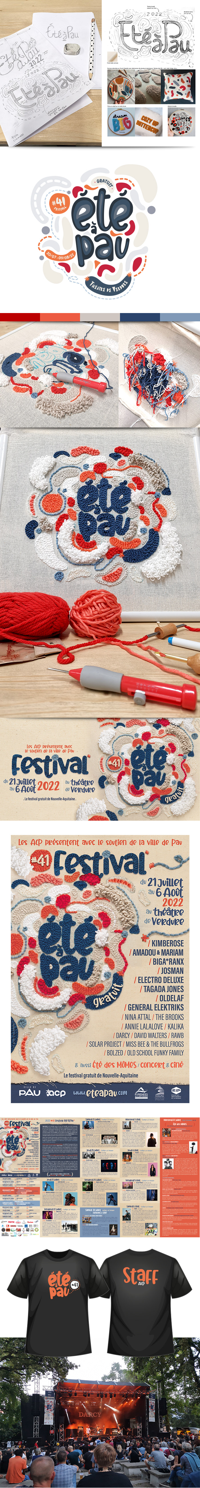 Création de l'illustration en punch needle et mise en forme de l'affiche et de toutes les déclinaisons en lien avec le Festival (dépliant, kakémonos, tshirt, réseaux sociaux...)